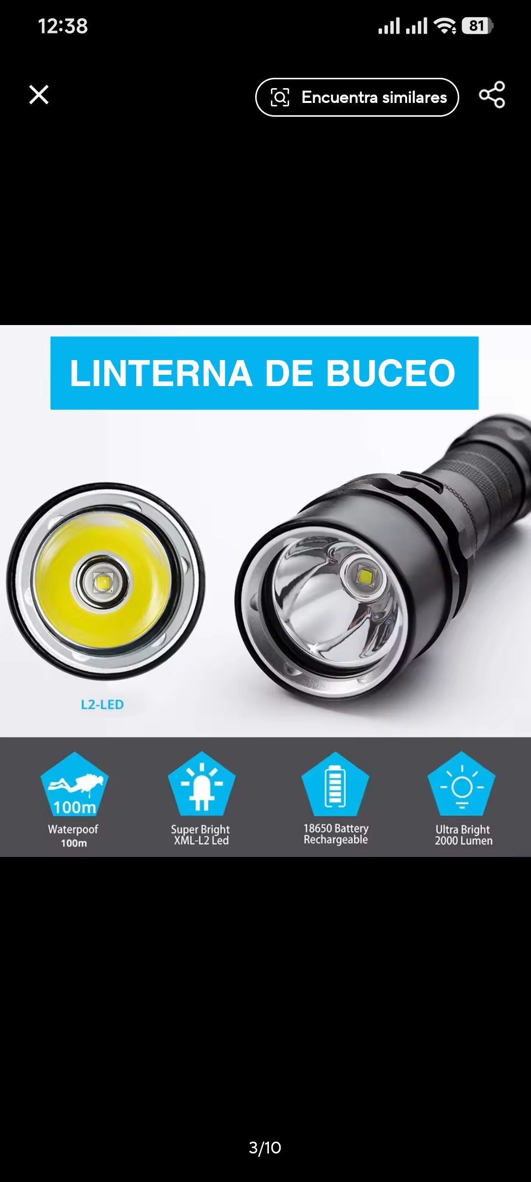 Ideal para: Pesca submarina, snorkel nocturno y como linterna de respaldo (backup) en buceo con botella. Su tamaño compacto la hace perfecta para llevar colgada de la muñeca sin que interfiera con tus movimientos.